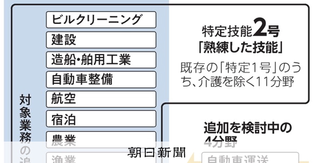 政府が、人手不足の分野で外国人労働者を受け入れる在留資格「特定技能」の対象に、自動車運送業や鉄道、林業、木材産業の4分野...