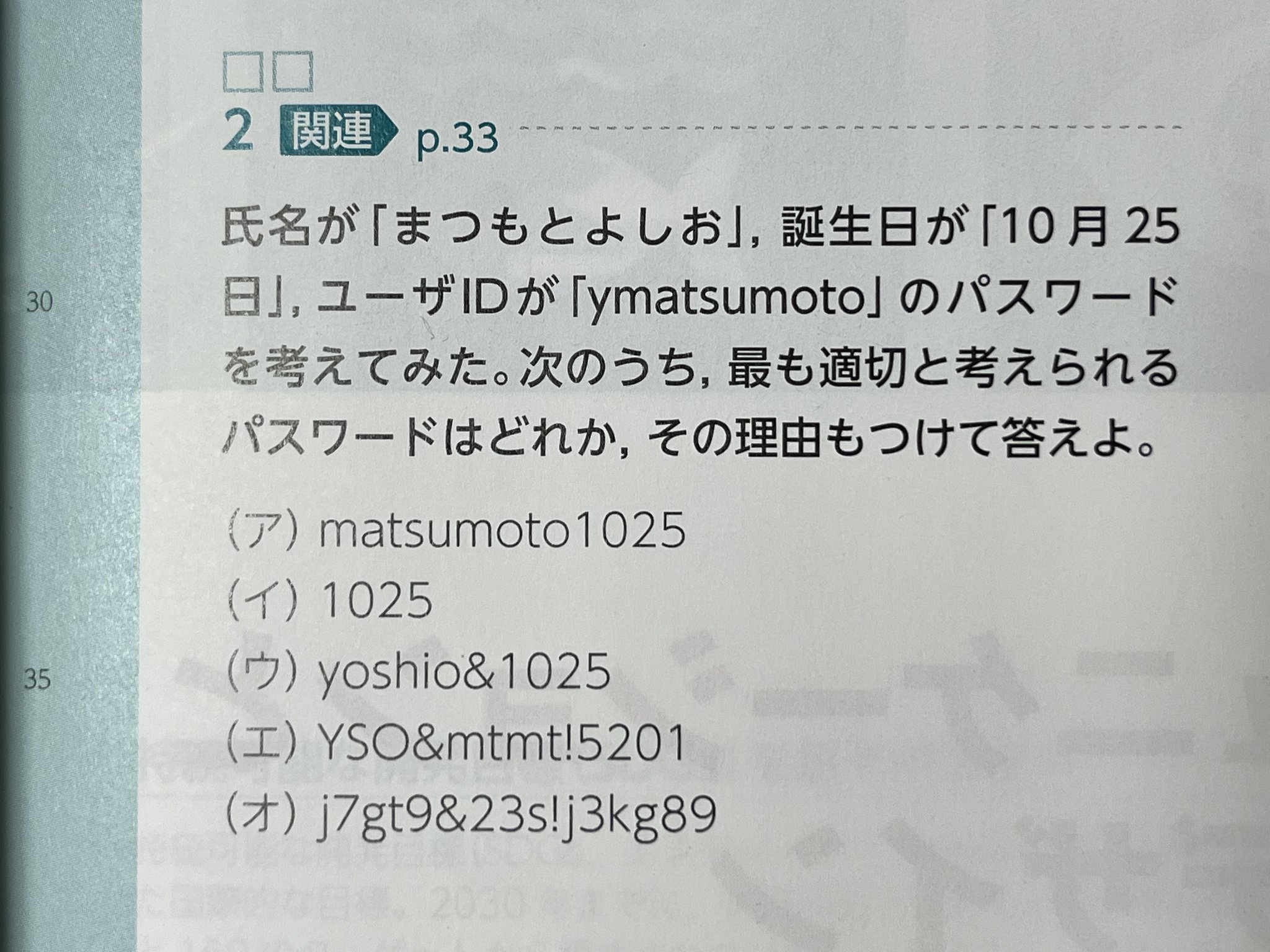 問題文はブラフや、現実的に覚えやすいパスワードにするという意味ならわからん