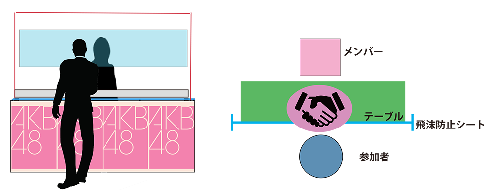 なお、今作の「個別握手会」では飛沫防止用の透明なシートを設置のうえ、メンバーは手袋を着用せず握手会を行います。