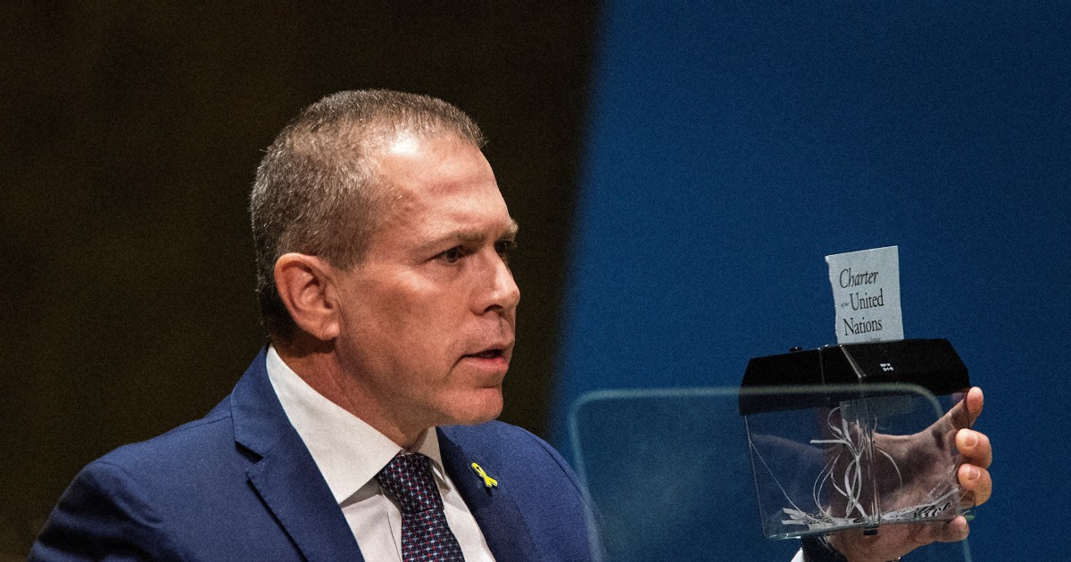 怒りのイスラエル大使 演説中に国連憲章をシュレッダーで細断 | 毎日新聞