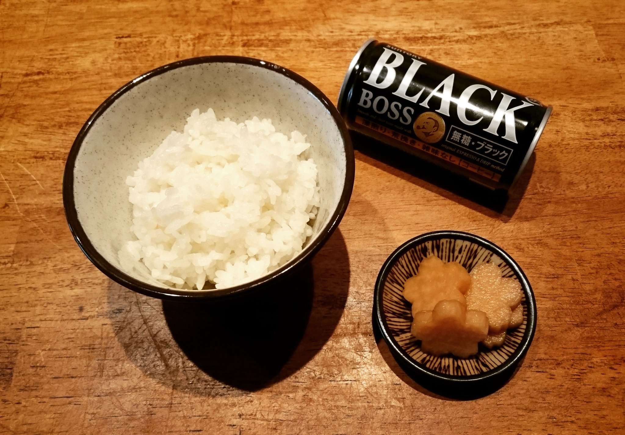 ごはんに小鉢の乗せてコーヒーかけてすする定食だぞ。