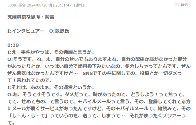 まぁ、今更ながらだが運営からヲタまで阿呆しかおらんかったからね。なかでも荻野と荻野ヲタなんか救いようもない程の阿呆さだったよ。早川まいやんなんかも火に油注ぎに来ただけだし笑