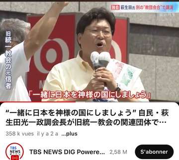 統一教会で、教会長と一緒に信者に説教をしたり、「一緒に日本を神様(教祖・文鮮明)の国にしましょう」と言ってた自民党の萩生田光一議員が、衆院選挙で非公認になる模様。