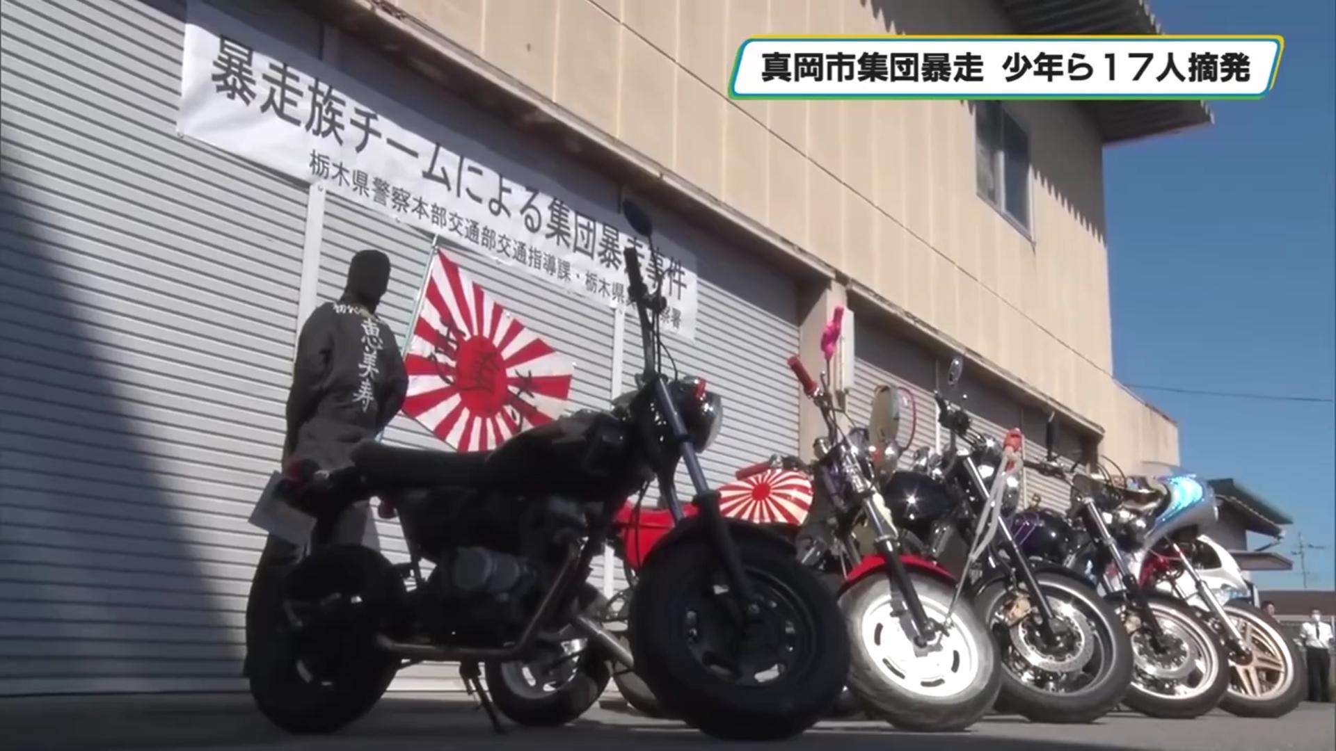 栃木県内の少年ら17人が原付バイクなどで集団暴走をしたとして検挙されました。