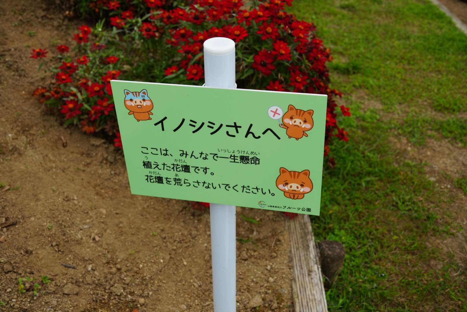 農業体験施設やから遊びに来た子供にイノシシは地面掘り起こす習性あって農作物潰すってこと教えたいんやろ