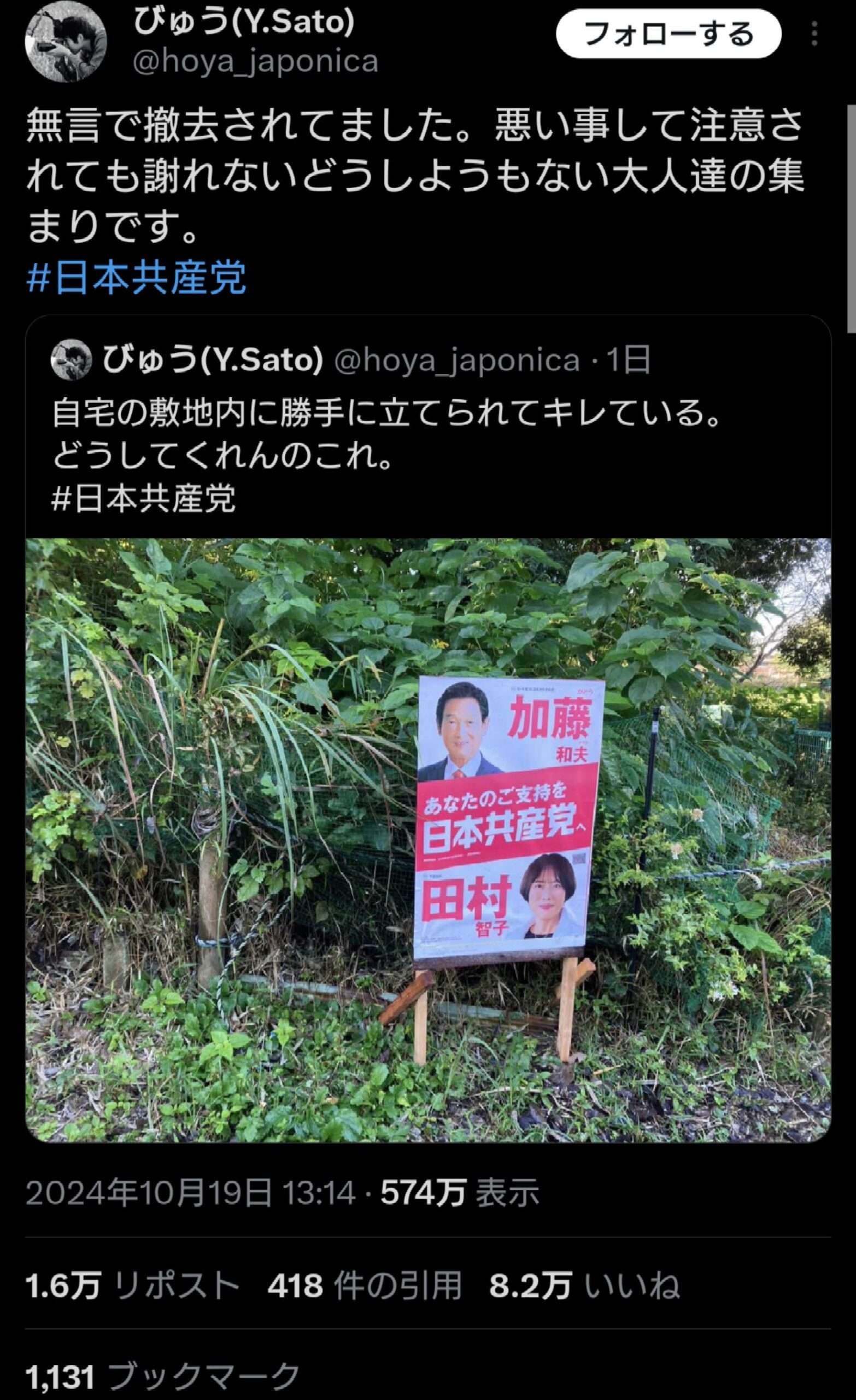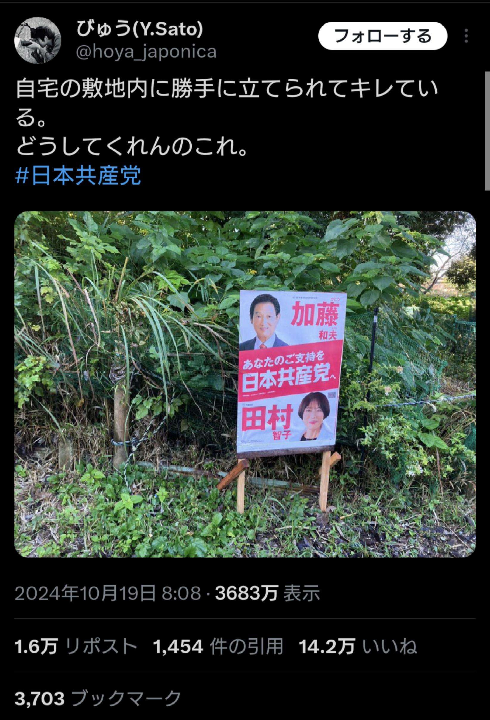 共産党は、点字ブロックの上で演説したり、選挙カーを不法駐車させたり、ろくでもねえ奴らの集まり。