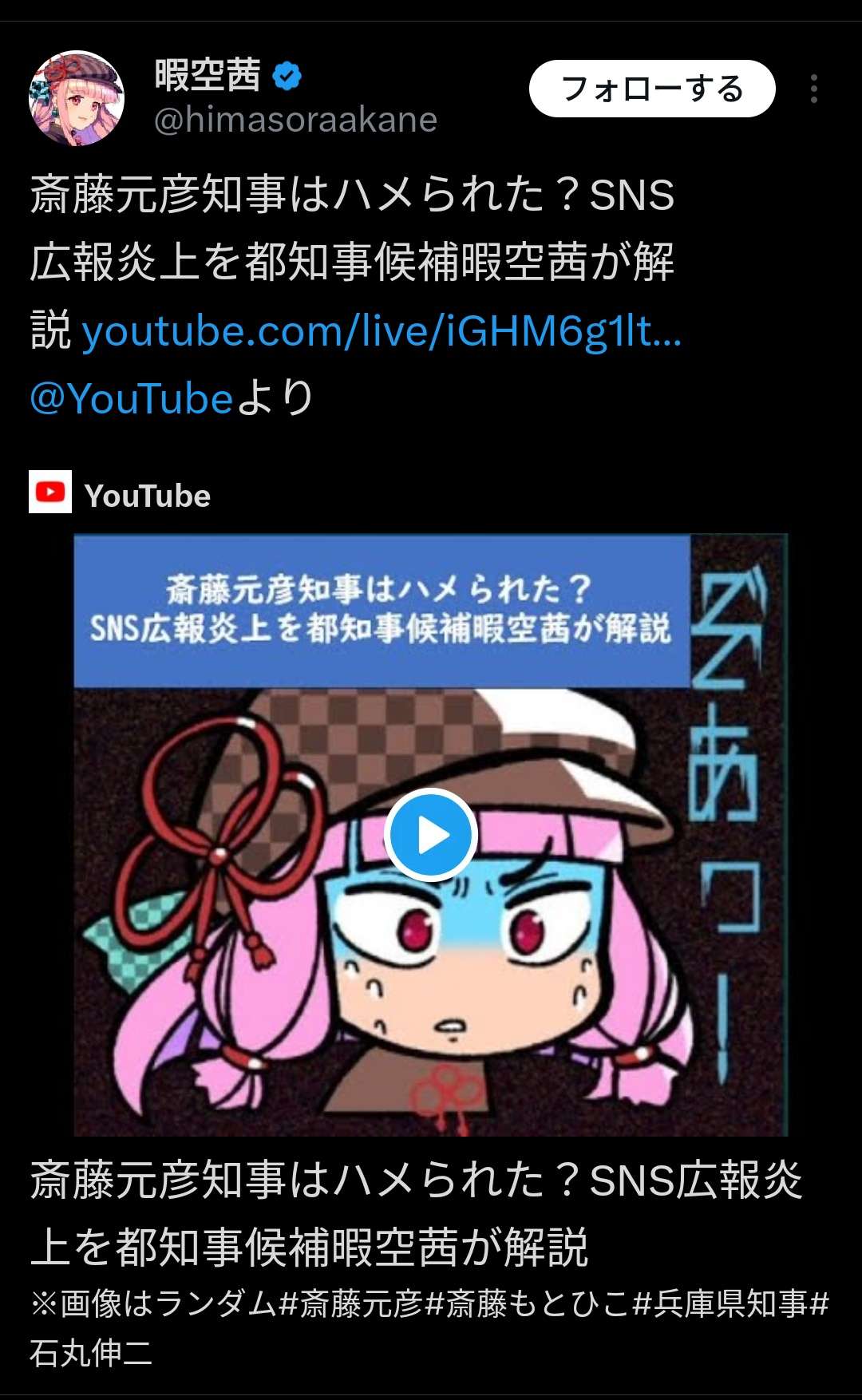 暇空茜さんが斎藤くんの味方に立候補したぞ