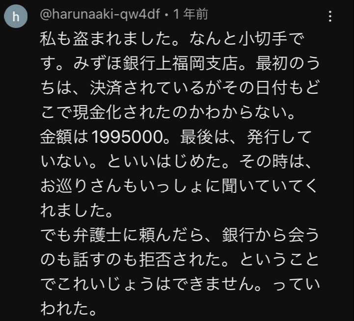 この件は5年前に銀行が泥棒を認めて解決してんのな