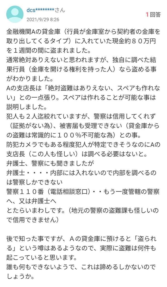 2021年で既に複数の人が「貸金庫に預けると盗られる」と噂してるなら銀行員の泥棒は普通に今回の4年半だけじゃないだろうな