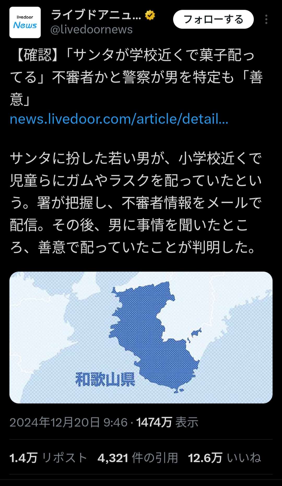 サンタの格好してお菓子配る→逮捕
