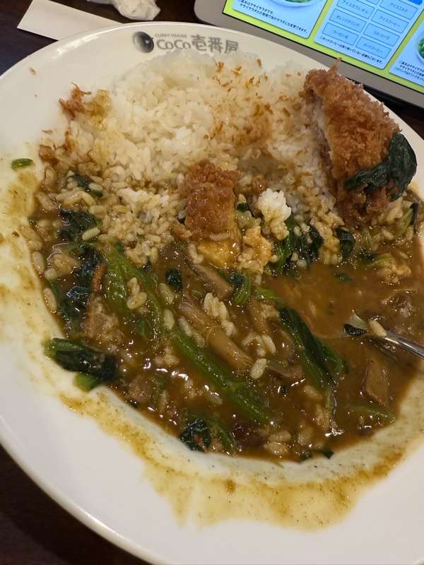 ほうれん草とカツは美味いがキノコはいらんな
