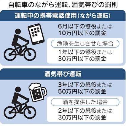 【悲報】自転車のながらスマホ、6ヶ月の懲役か罰金10万円