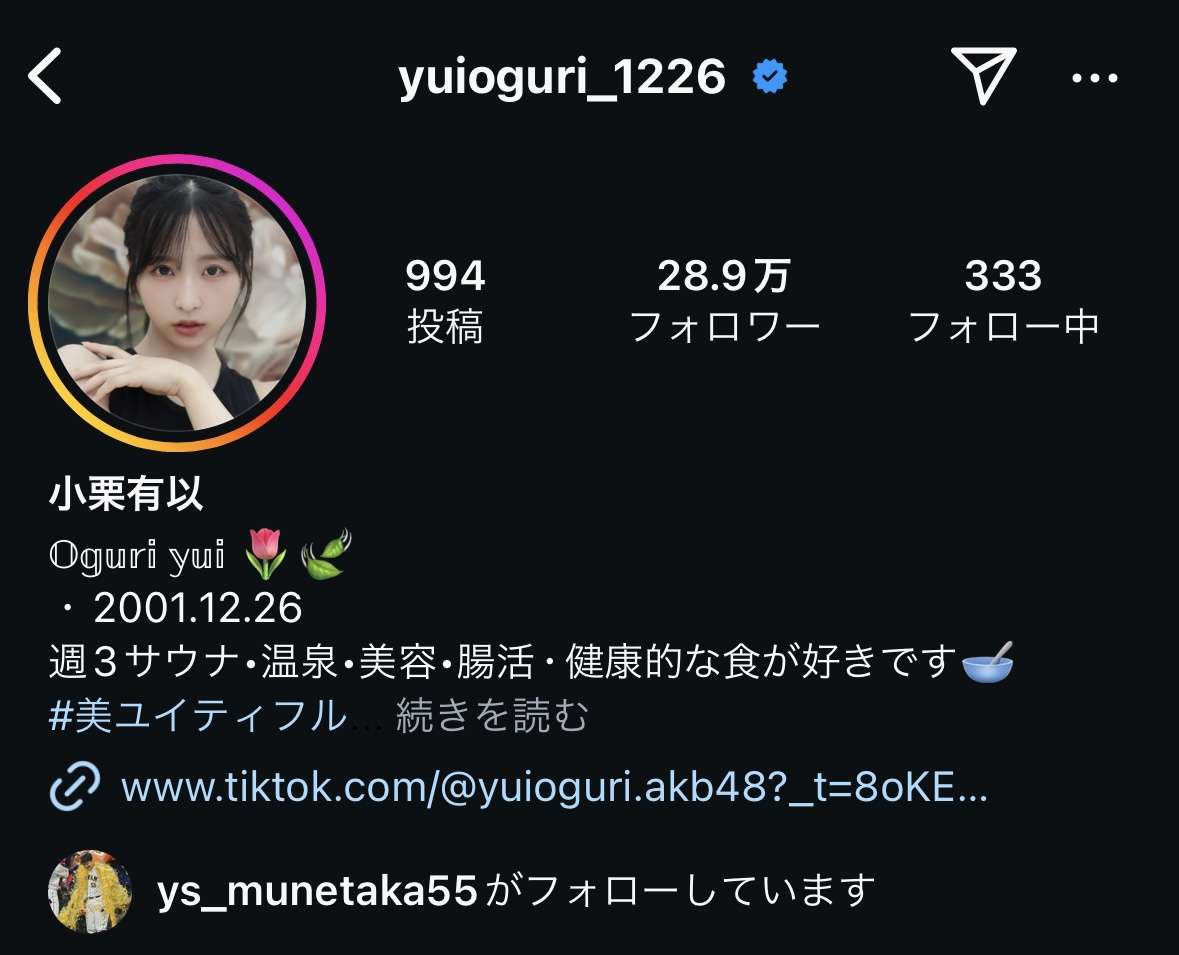 小栗がフォローしてるヤクルト関係者は村上だけ