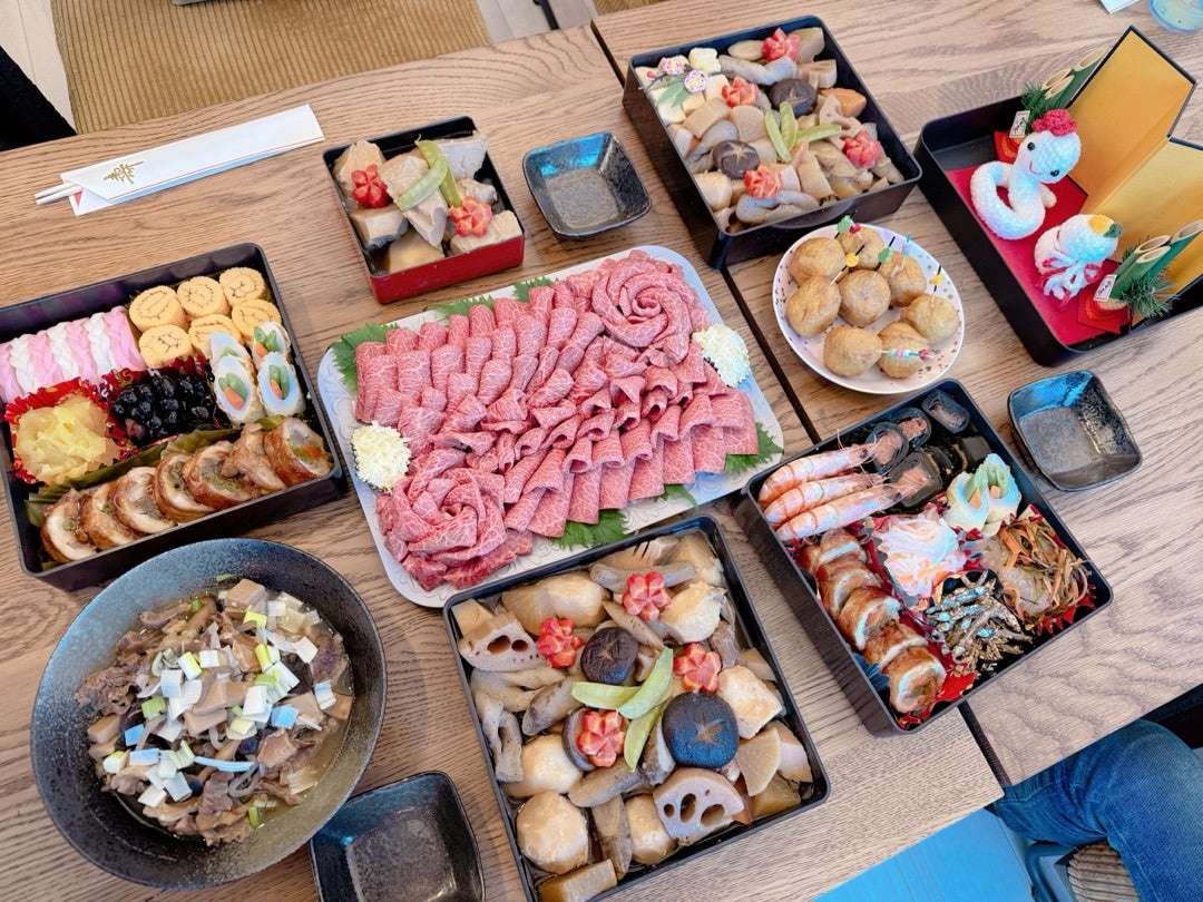 とコメントすると、豪華なおせち料理が並ぶ食卓の写真を公開。