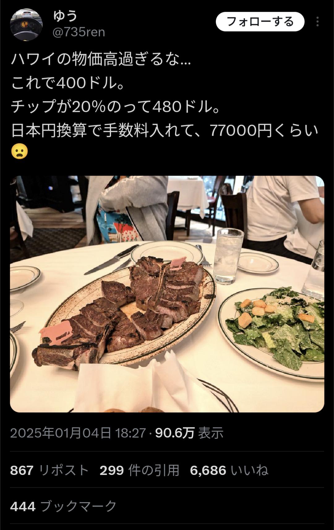 これウルフギャングだしこの量日本で食っても5万近くはするぞ