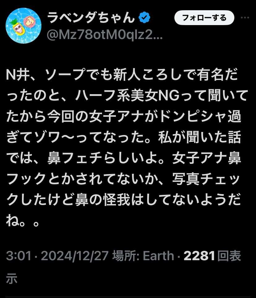 まっつん中居くん「賢い女が好き、ロリ系が好き、気が強そうな美人はNG、尊厳破壊するような陵辱プレイが好き」