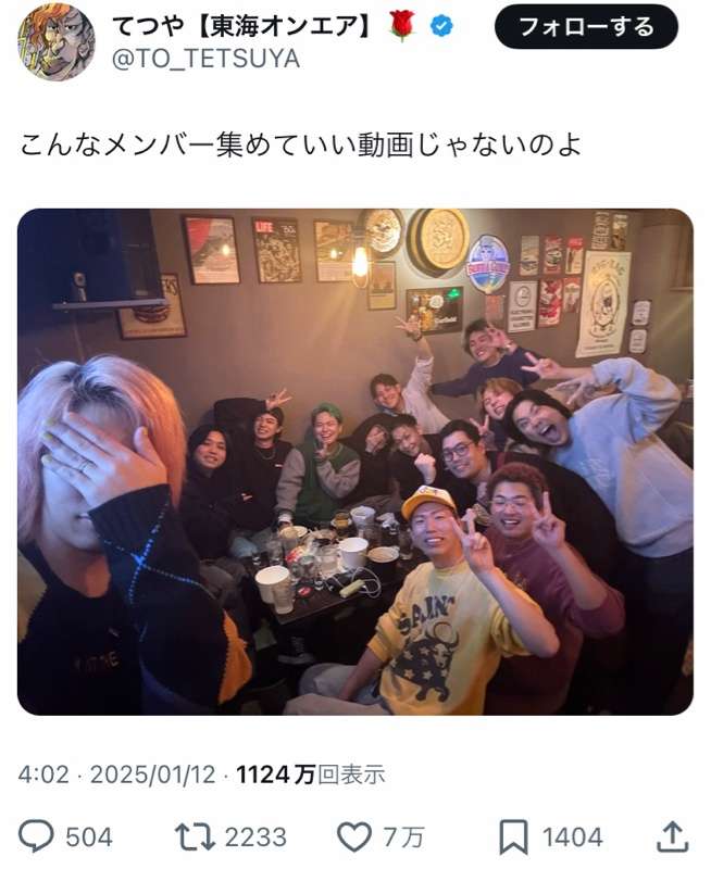 【YouTuber】東海オンエアてつや「今から飲める人いる?」← 有名人が大勢集まってしまうwwwwwwwwwwwww | ヤバイ!ニュース(・∀・)
