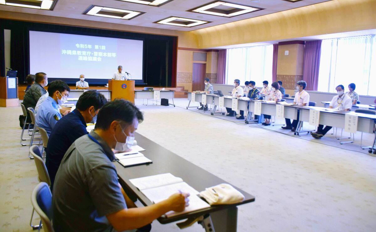 沖縄県警と県教育庁は28日、那覇市の県警本部で、子どもの非行防止を目的とした連絡協議会を開いた。双方の担当者ら約30人が...