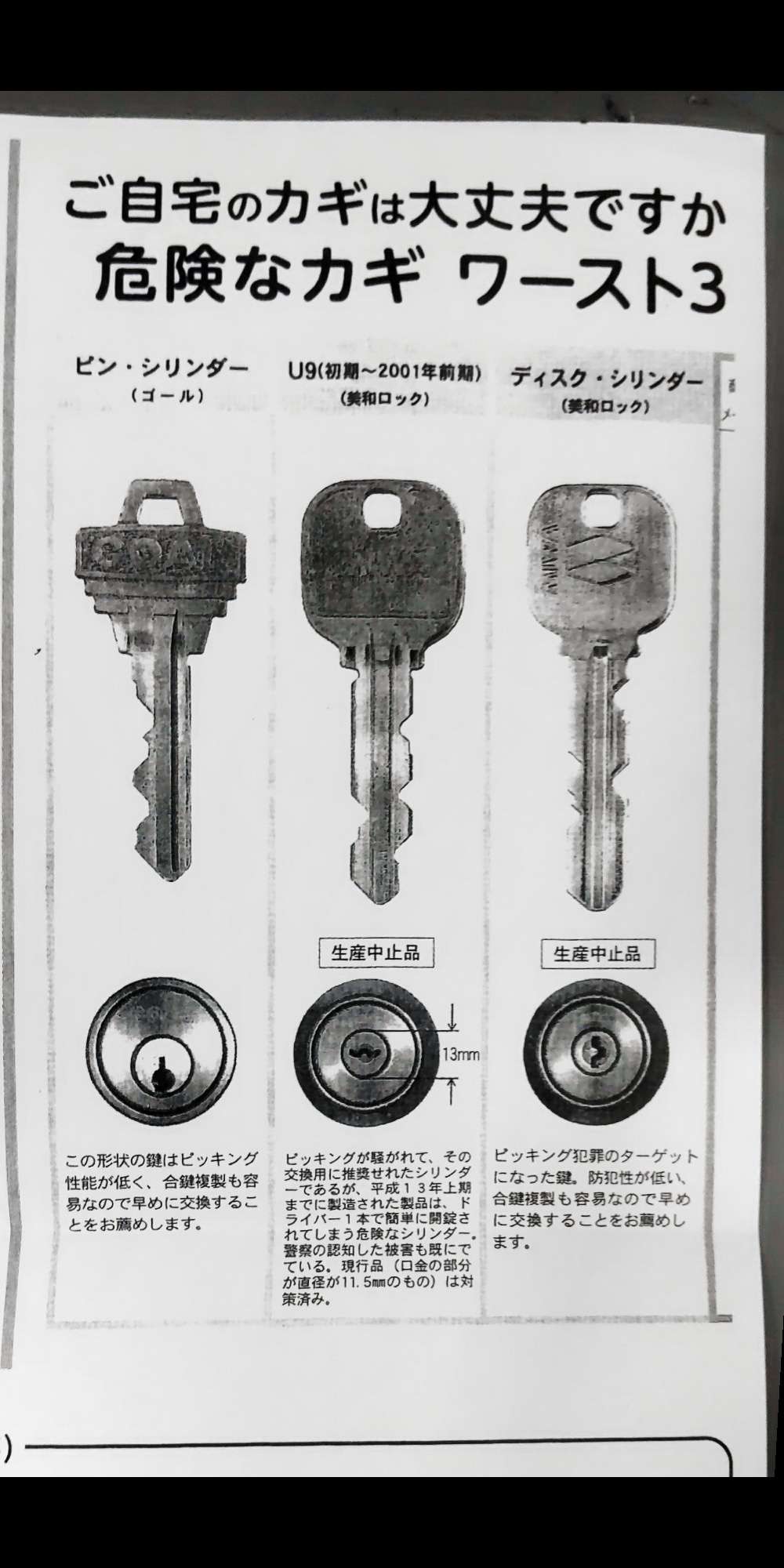 真ん中のやつ使ってたけど鍵無くして鍵屋呼んだら秒で開けてて草生えた