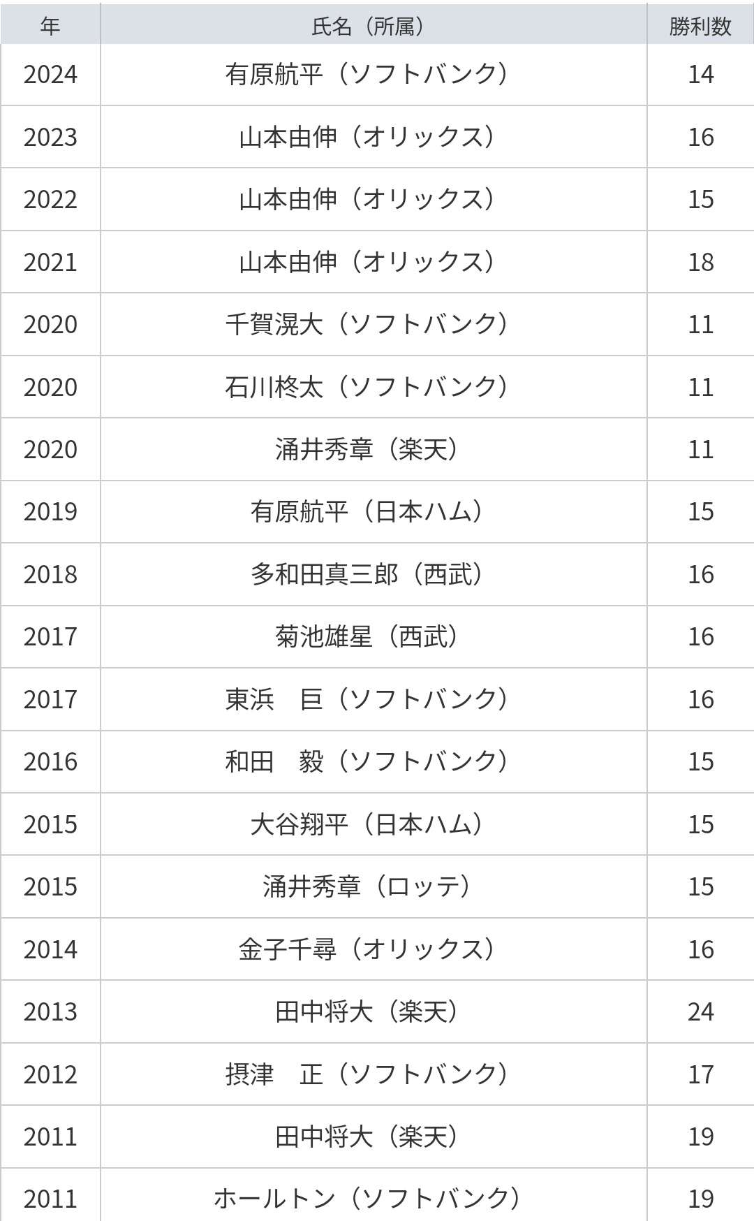 WBC参加してたら「WBCメンバー」って入れるはずやから、妻帯者でWBC出てない最多勝投手
