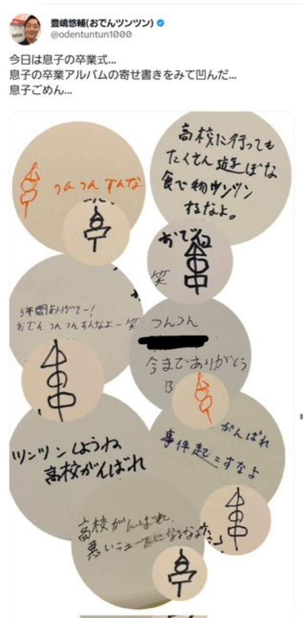 【悲報】おでんツンツン男の息子の卒アルの寄せ書き、とんでもないことになってしまうwwwwwwwwwwww | ヤバイ!ニュース(・∀・)