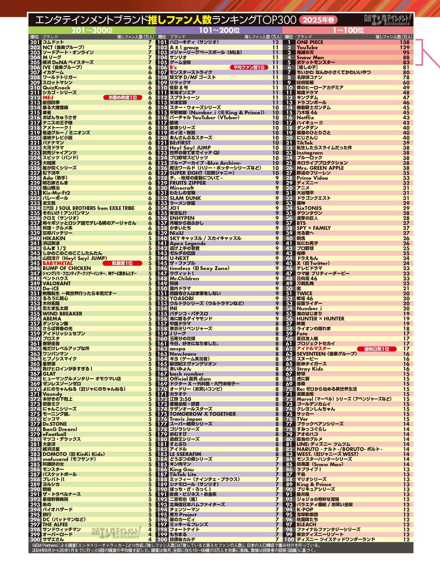 4位のスノーマンをはじめ15位の乃木坂とかドームでライブできるのって
