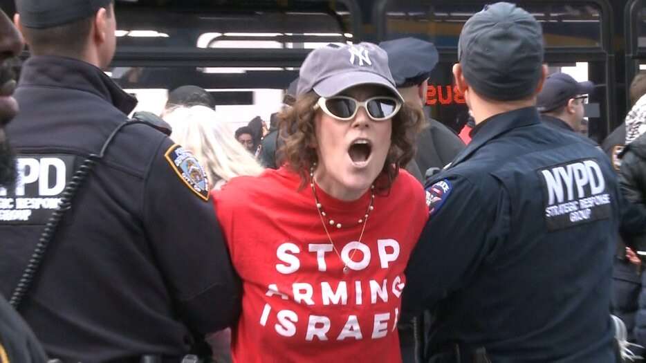 米メディアによると、侵入したのはユダヤ人のグループで、拘束されているマフムード・ハリルさんについて「今すぐ家に帰せ」などと叫びながら、タワーのロビーを一時占拠した。