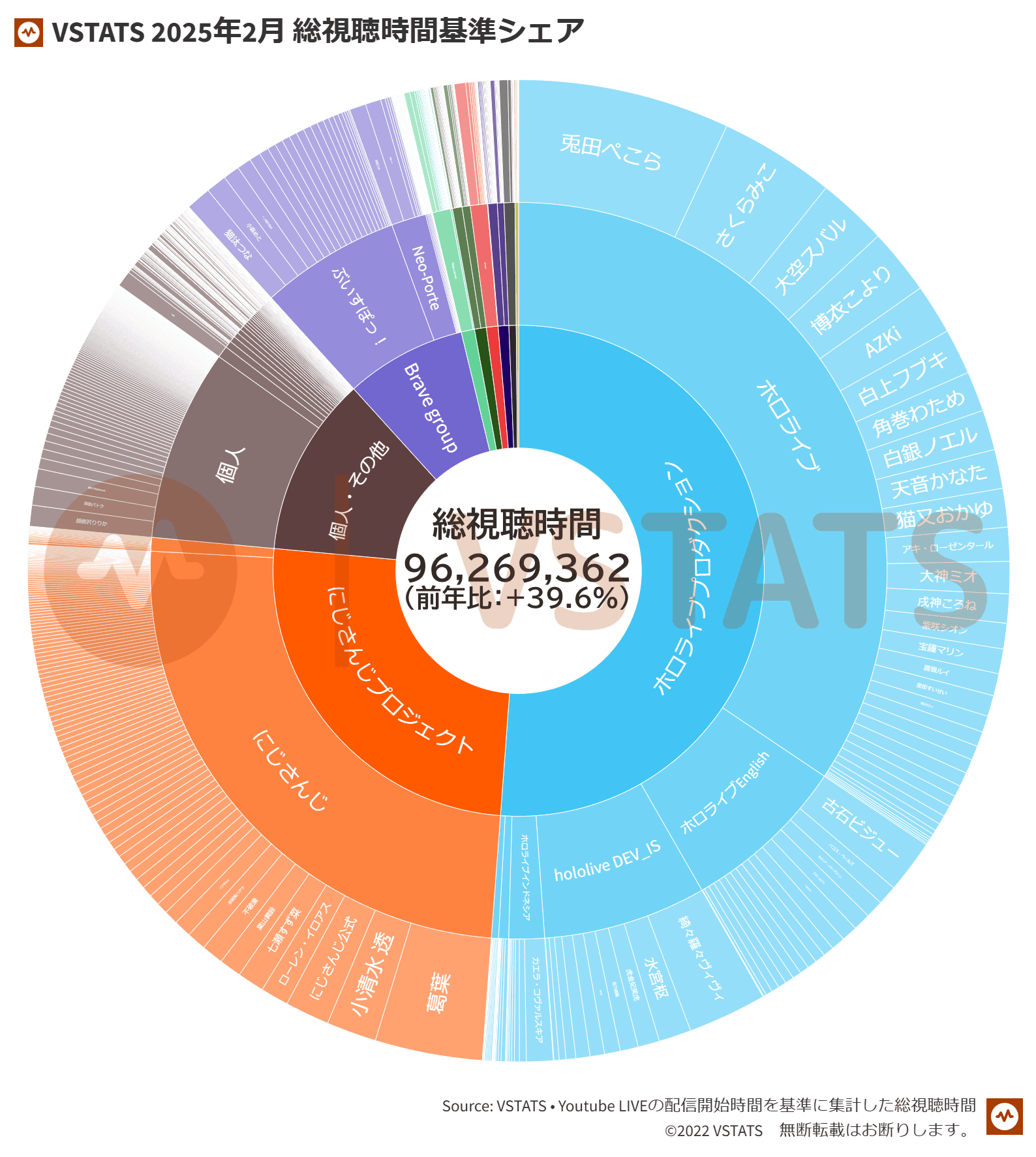 にじさんじってぶいすぽより所属タレント数10倍ぐらい多いのに半分ぐらいしか差がないやんけ