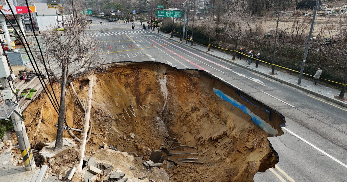 韓国・ソウルの道路陥没 転落のバイク運転手、心肺停止状態で発見 | 毎日新聞