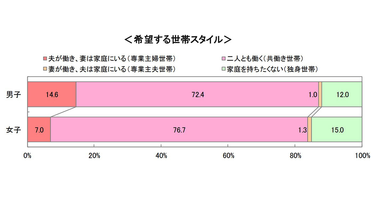 23年卒の女子学生が将来的に専業主婦を希望する割合は7%と、はじめて1割を切る結果に【DISCO調査】