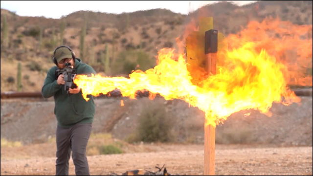 自動小銃にマウントしてターゲットを焼き尽くせる火炎放射器「Pulsefire UBF」の動画