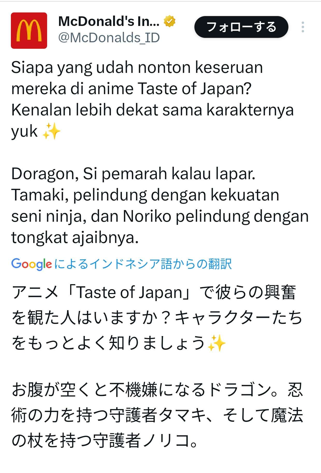 【画像】インドネシアのマクドナルドさん、日本モチーフのフレーバーとキャラが話題にwwwwwwwwwww | ヤバイ!ニュース(・∀・)
