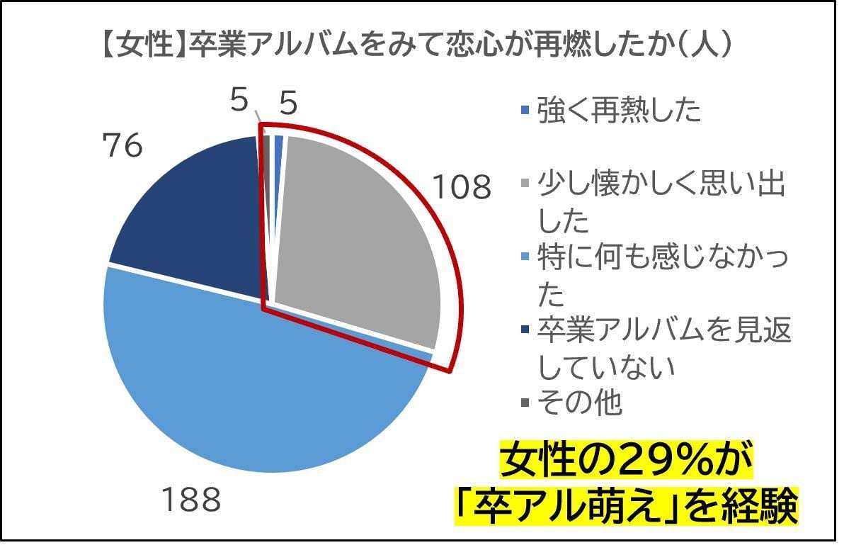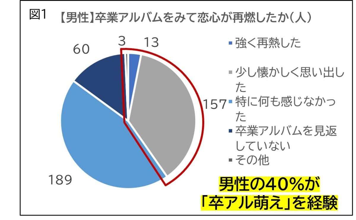 「卒業後も人をつなぐ卒業アルバムの実態調査」の結果が発表されました。卒業アルバムを見て学生時代の恋心を再燃させる“卒アル萌え”を経験した人の割合とは……?