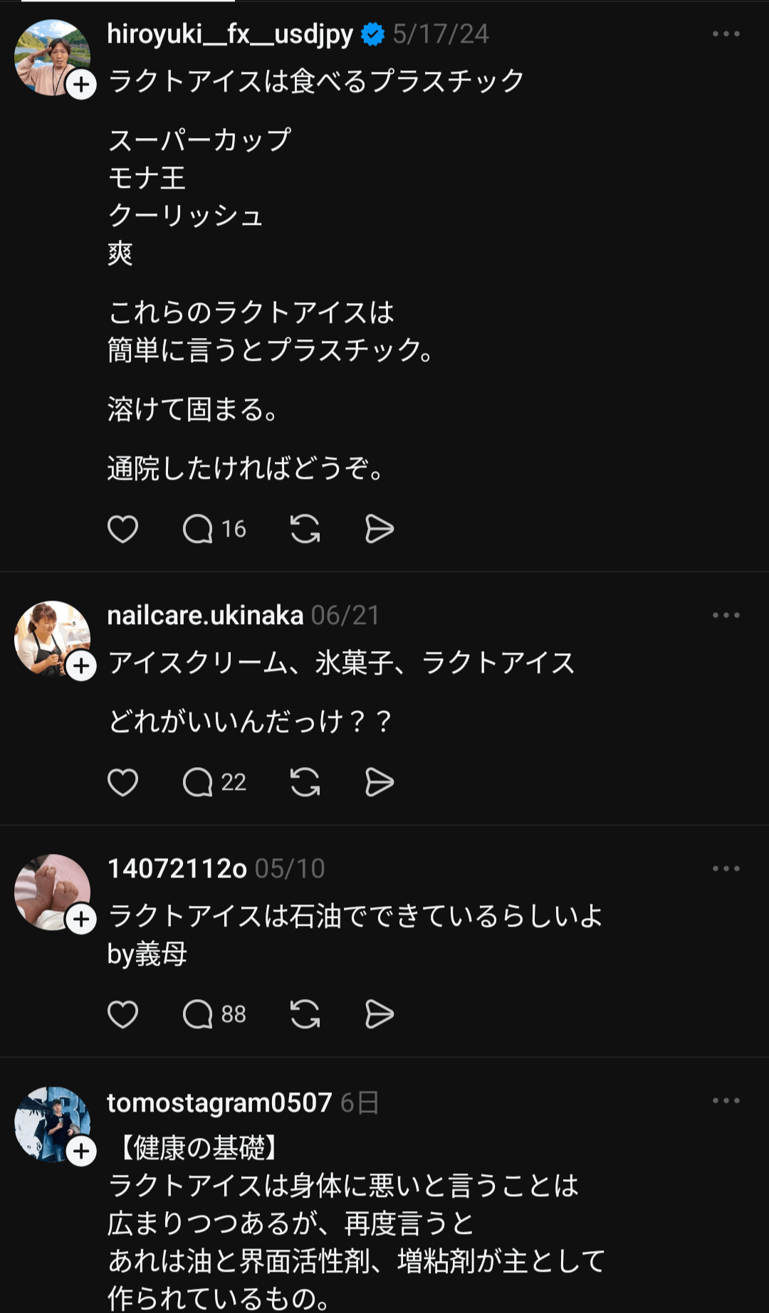 ラクトアイス食べないやつはサラダ油や植物油使った料理を一切食べないんか?