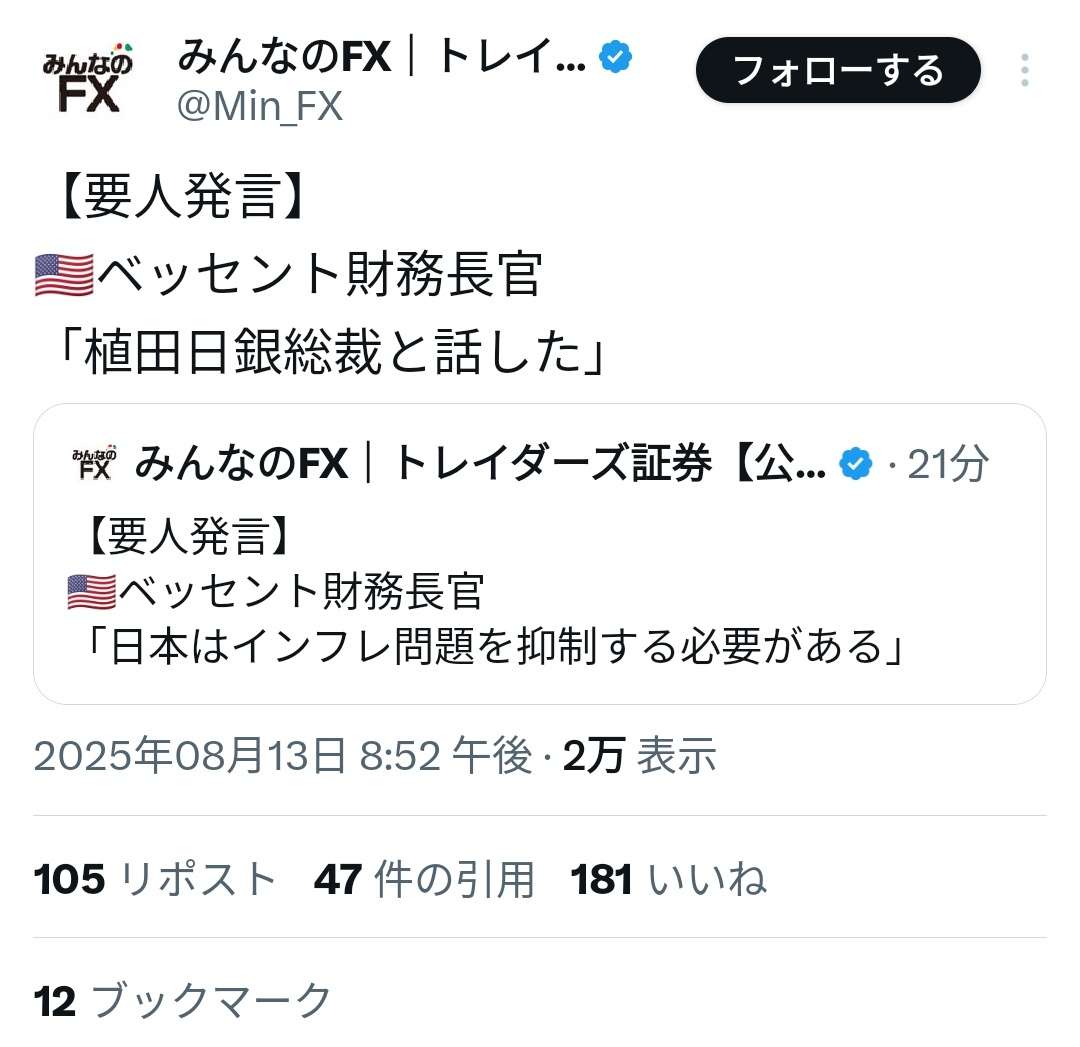ベッセント「おい、日本州知事チンタラすんなよ」