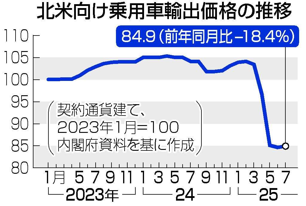 乗用車輸出価格がマイナス18.4%になった模様