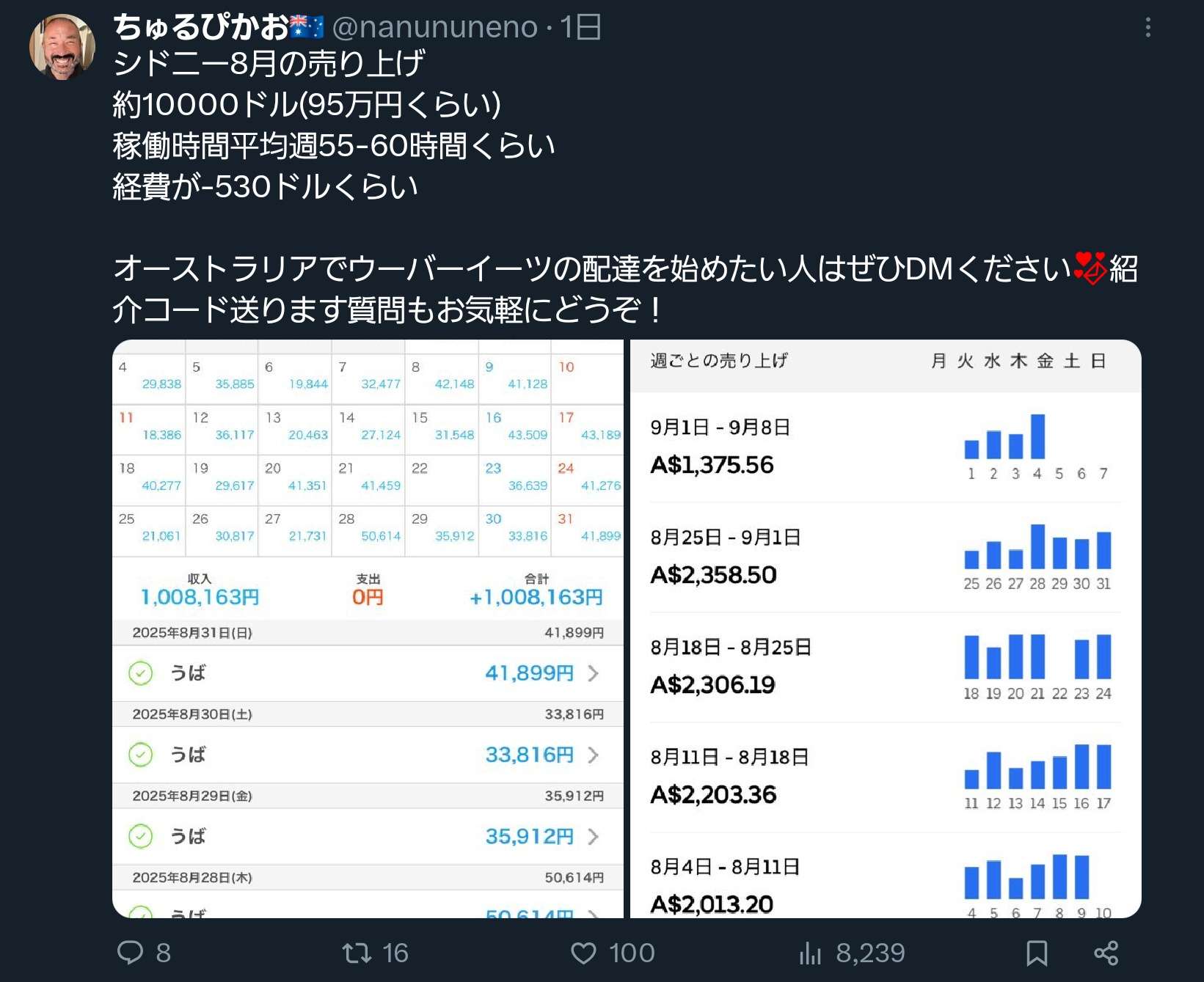 Uber Eatsだけで月収100万円いく模様