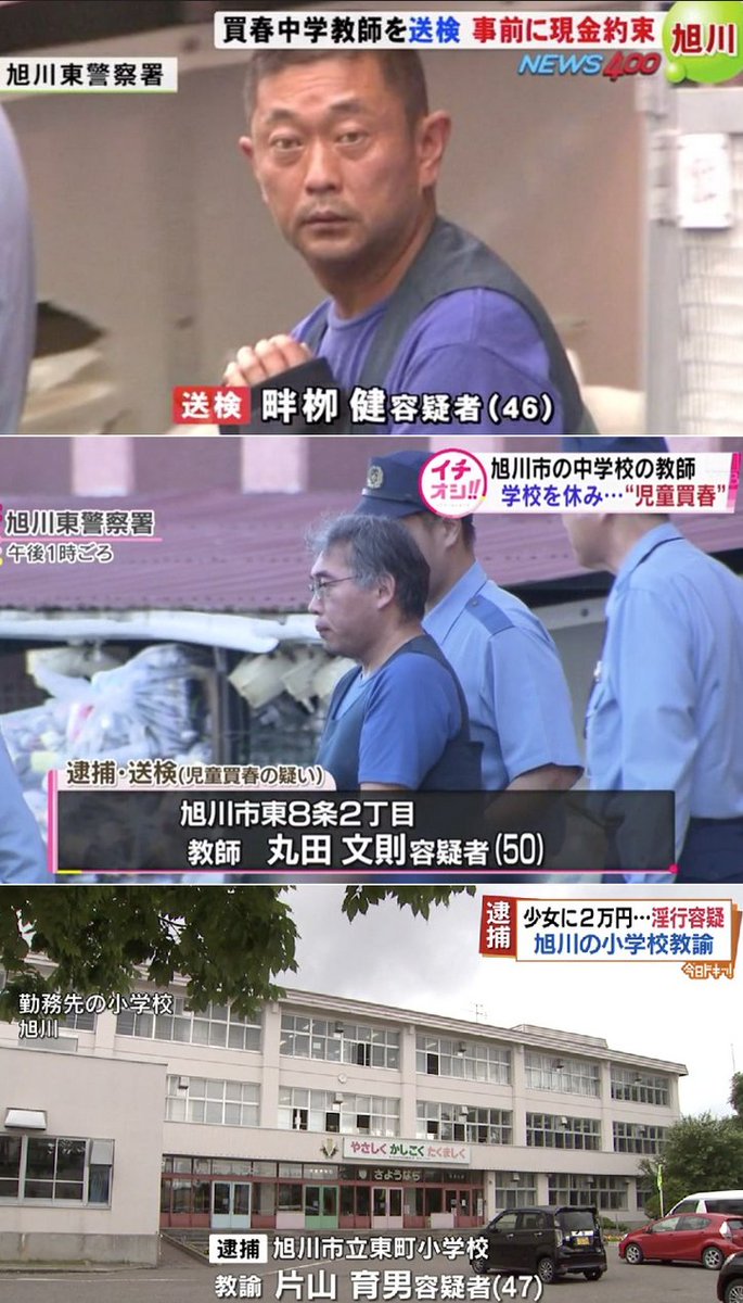 旭川では教諭が相次いで買春容疑で逮捕