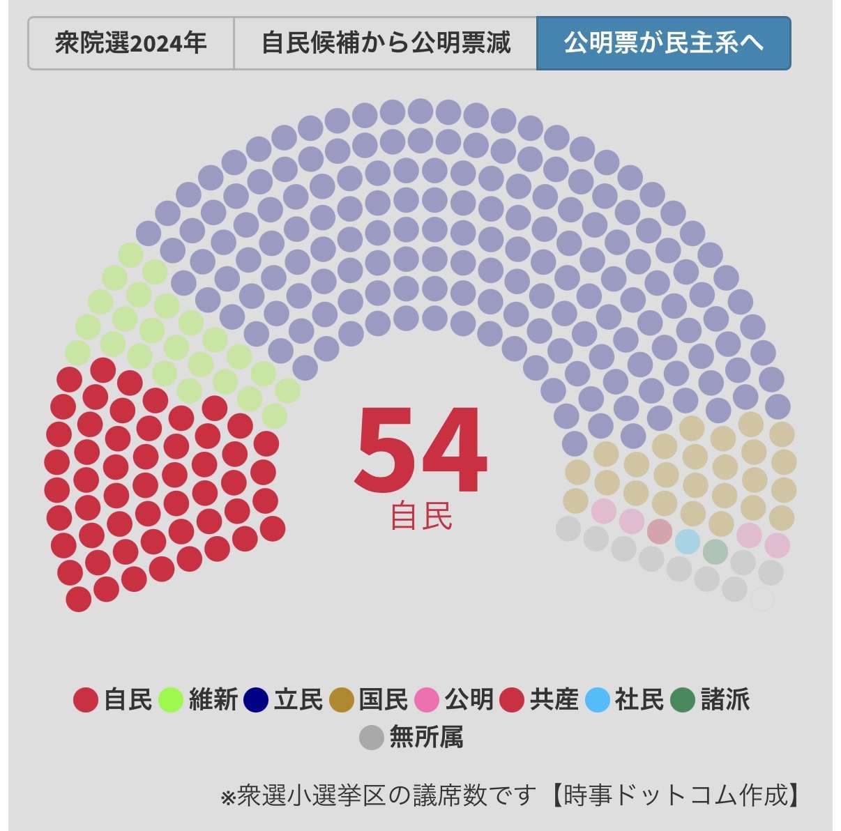 なんかテレビだと公明票が無くなって自民党厳しいみたいな事言ってる人多いけど
