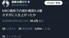 16 以下、5ちゃんねるからVIPがお送りします 2026/02/15(日) 20:46:54.965 ID:o6VLRNZM0