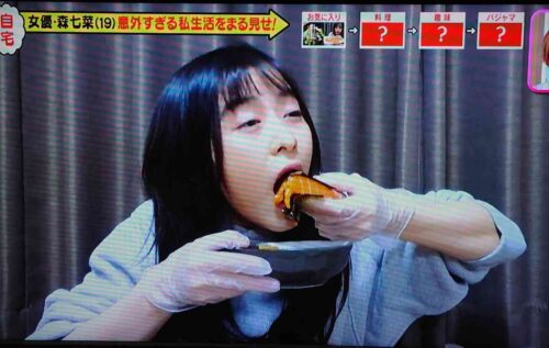 手がべたつくからこういう薄手のビニール手袋して食べてるっぽい