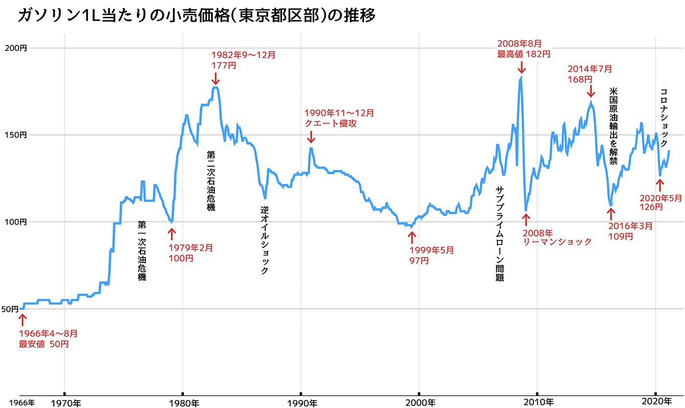 2000年くらい前の大学生だったときは80円でバイクにレギュラーガソリン入れてたわ