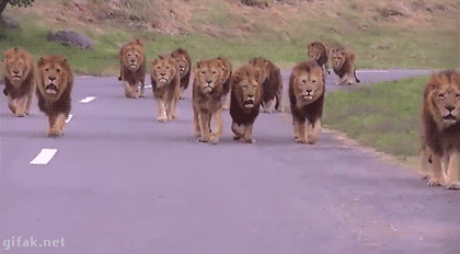 ちょっと遅れてる2匹のライオンを気にしてるライオンくん可愛い
