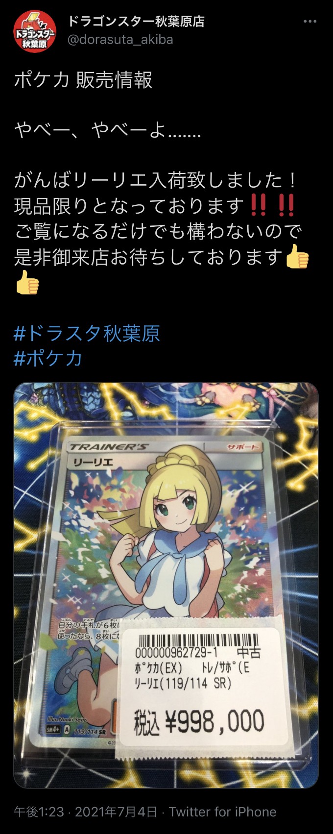 リーリエに関してだけ言えば今は対戦では使えないカードだからコレクション需要しかない