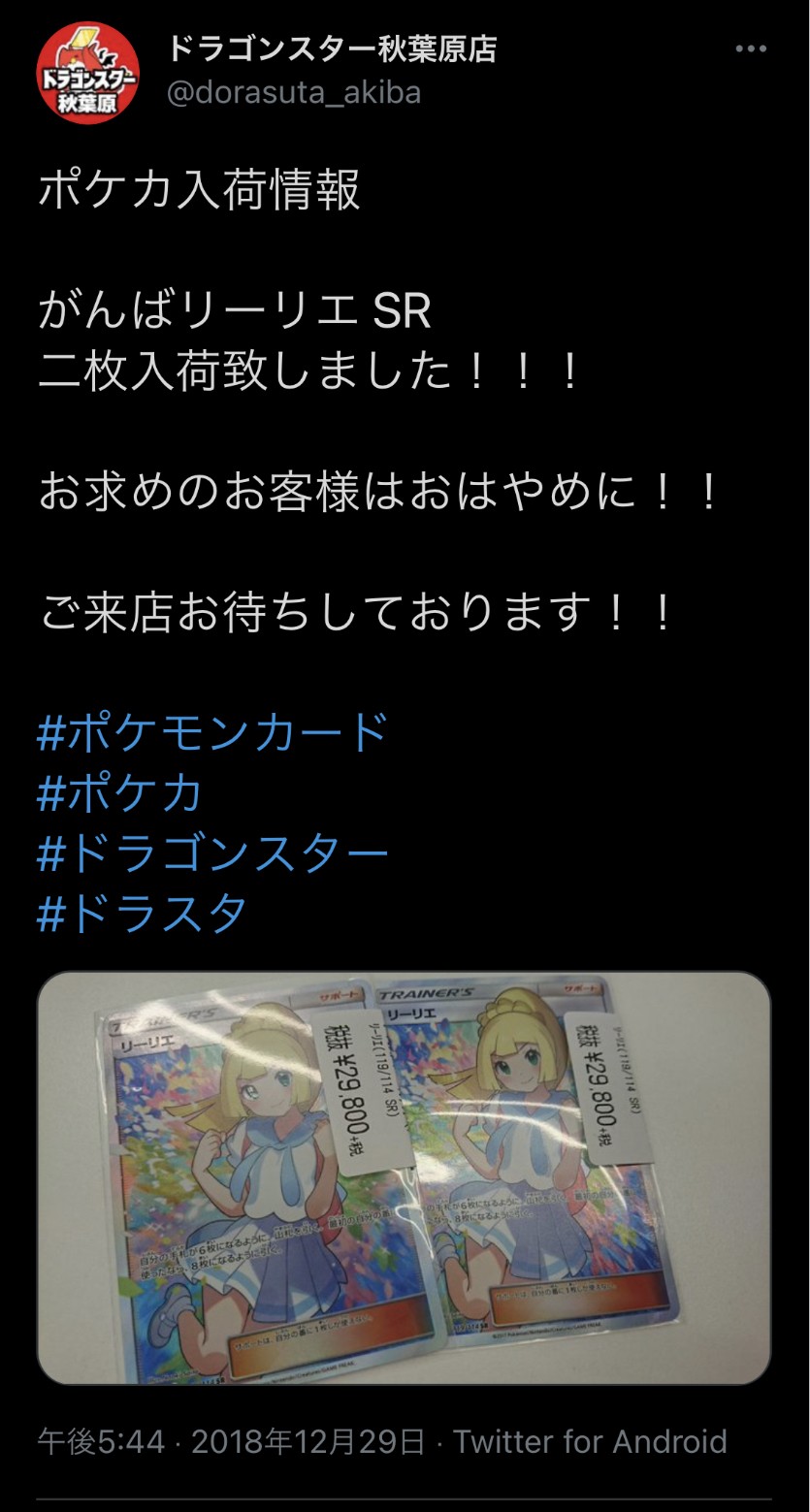 しかもリーリエは箱買いで確定SR枠があったからかなり手に入りやすかったんだよな